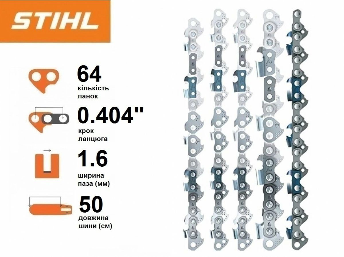 Ланцюг STIHL 46 RM Rapid Micro, 50 см, 0.404", 1.6 мм, 64 z використовується в пилах Урал.