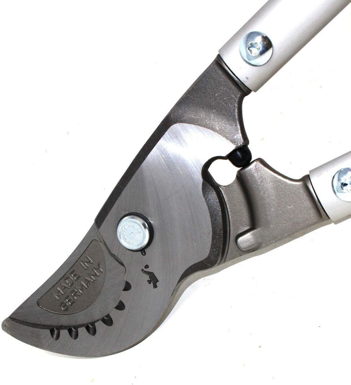 - Інструмент має ріжучу головку з кованого металу, а також фіксуючі стопори для найкращої фіксації під час зрізу;
