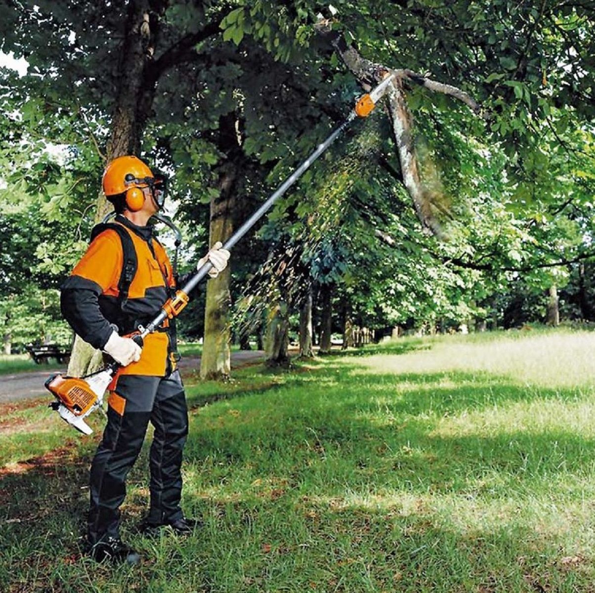 - За допомогою практичного телескопічного штока довжиною від 2,7 до 3,9 м можна легко зрізати гілки на висоті до 5 м від землі, не використовуючи для цього сходи або інший підйомний механізм;